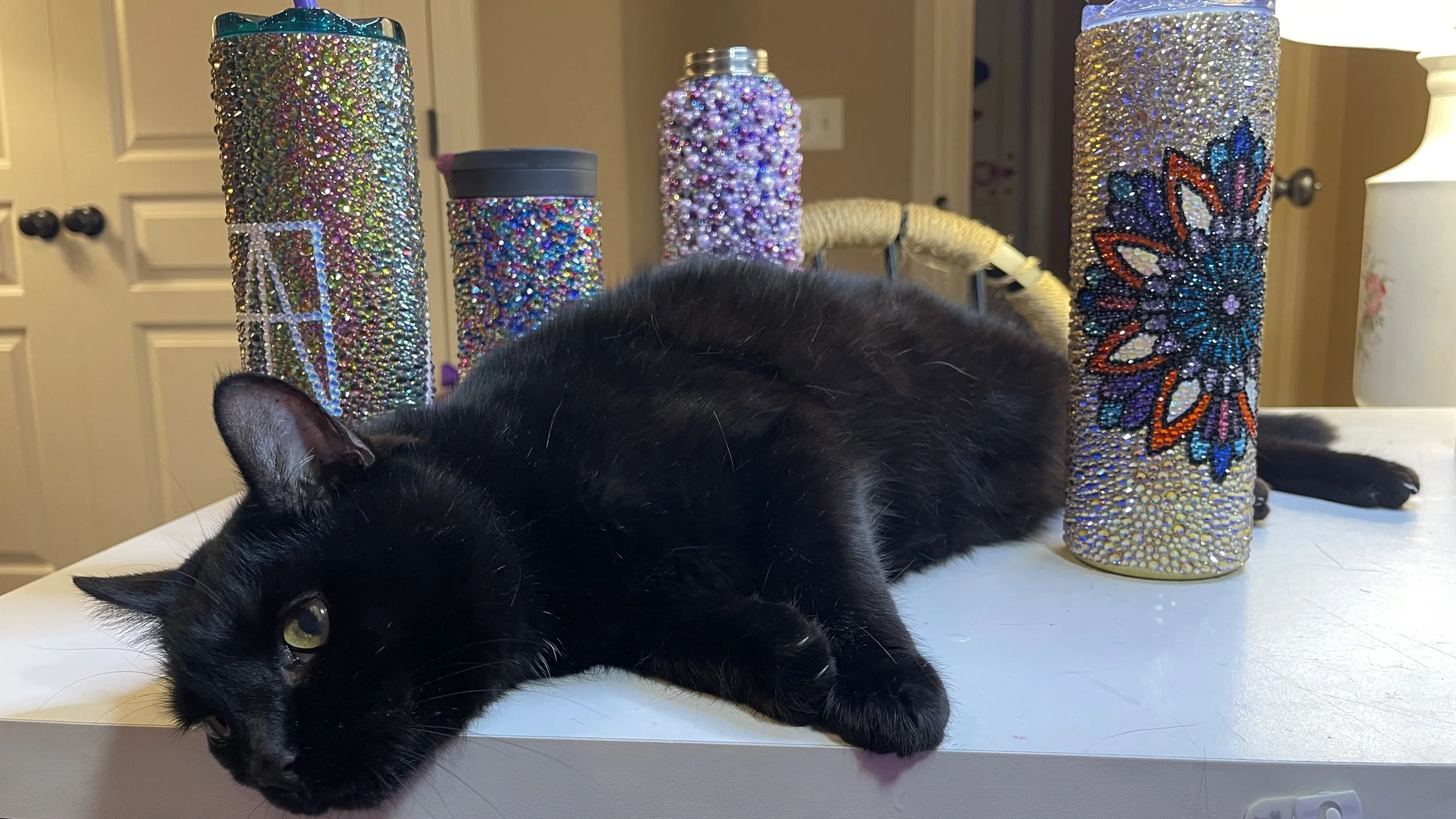 The name Black Cat Blingary ironically has nothing to do with Halloween, even though it was a Halloween costume that sparked this business. I have had the privilege of black cat companionship since I was 5 years old, not purposefully, they just seem to find me. Let me introduce you to my “bling helper” Eli, I rescued him 12 years ago when he was just 8 weeks old and he hasn’t left my side since. He insists on sitting on or near me anytime I sit down to work and its not uncommon for him to end up covered in glitter and/or rhinestones. I have always been a huge advocate for black cats, as they take longer to be adopted from humane societies and rescues than any other color because of silly superstitions. Did you know in some cultures black cats are actually considered good luck?